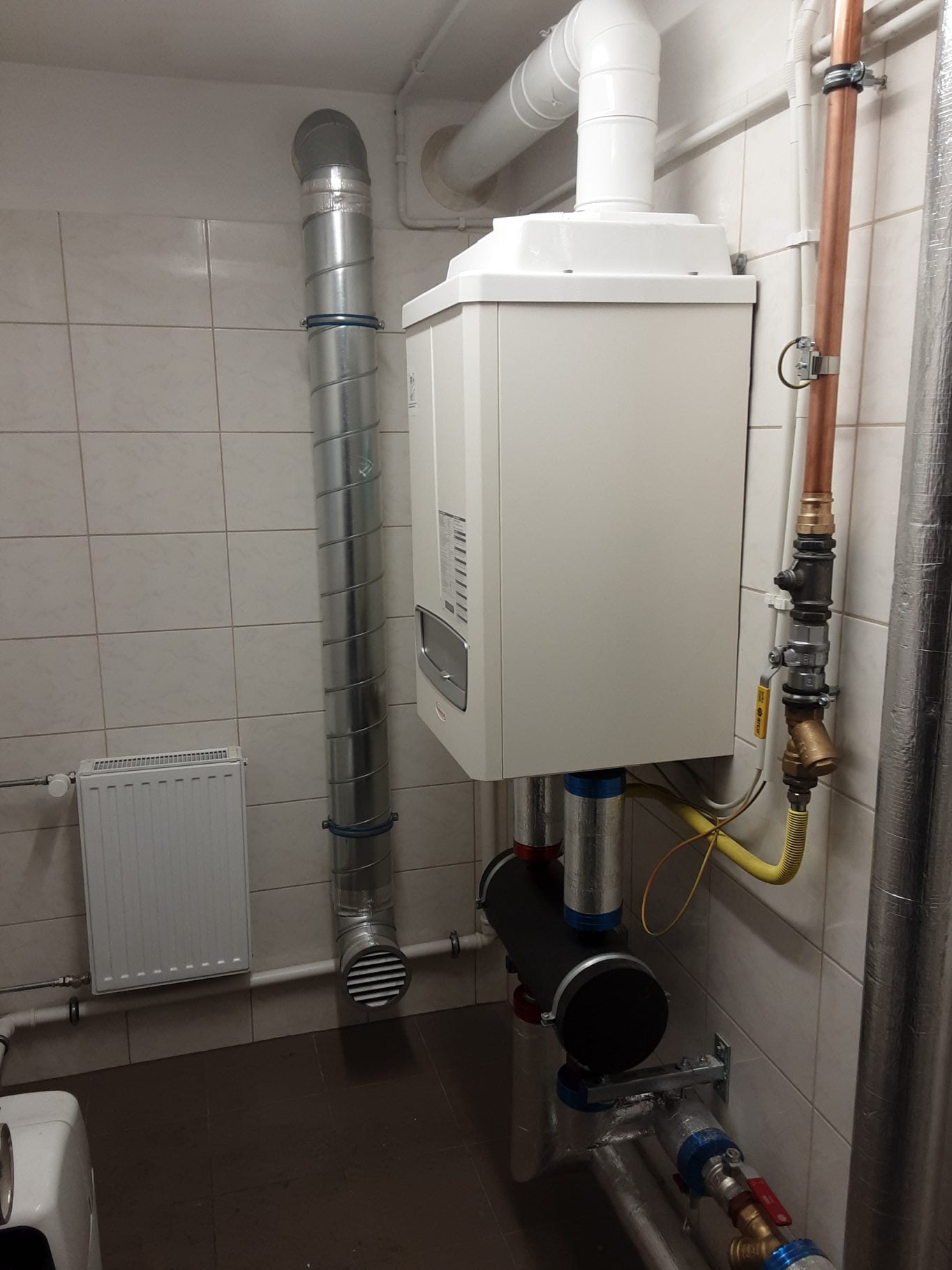 Modernizacja kotłowni w urzędzie miejskim. Wcześniej budynek ogrzewany był przez kocioł stałopalny na drewno 60 kW. Po zmianie na bezobsługowy kocioł kondensacyjny Victrix Pro 55 znacznie poprawił się komfort cieplny urzędników. Ta bardzo ekonomicznie opłacalna inwestycja pozwoliła na uwolnienie miejsc, które przeznaczone były na składowanie opału, a także dzięki wyjątkowej efektywności wygenerowała oszczędności na rachunkach.