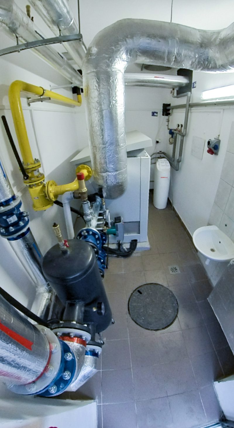 Kotły z serii Ares Tec mają możliwość pobierania powietrza, na potrzeby procesu spalania, z pomieszczenia, w którym pracują. Jeśli to konieczne, istnieje możliwość wyposażenia ich w dodatkowe elementy, pozwalające na pobieranie powietrza z zewnątrz – tak jest w tym przypadku. Kompaktowa budowa kotła pozwala na lokalizowanie kotłowni w pomieszczeniach o bardzo małej powierzchni, w zgodzie z wymogami „Rozporządzenia o Warunkach Technicznych”, które powinny odpowiadać budynki i ich usytuowanie.