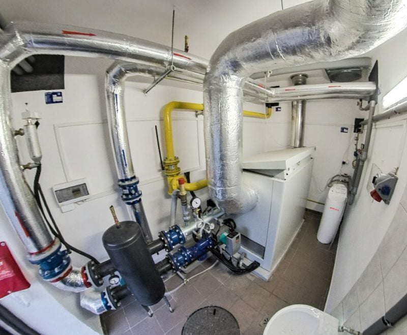 W wyjątkowo niewielkim pomieszczeniu kotłowni o powierzchni całkowitej 9,2 m2 został zainstalowany jeden z modeli kotłów z serii Ares Tec o największej mocy 900 kW. Zasila on jeden obieg grzewczy, dostarczając ciepło do ogrzewania hali produkcyjnej oraz pomieszczeń biurowych.