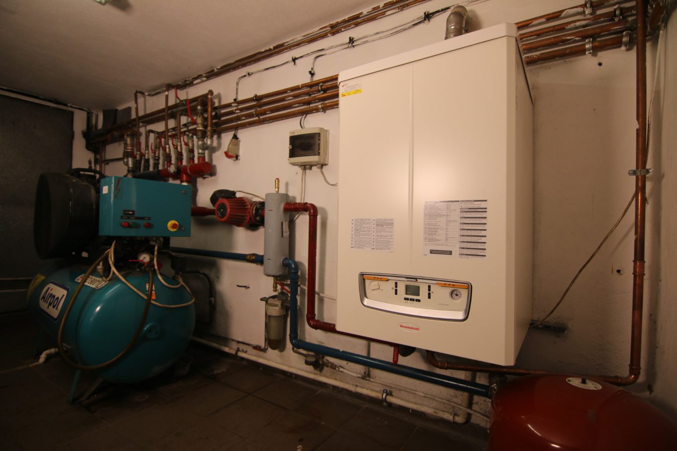 Za dostarczenie ciepła do obiektu odpowiada pojedynczy kocioł Victrix Pro 100. Zastosowany w tym kotle palnik typu PREMIX, o szerokim zakresie modulacji, zapewnia pracę kotła charakteryzującą się najniższym zużyciem gazu bez względu na porę roku. Pracując z mocą minimalną 9,4 kW, daje możliwość produkcji energii cieplnej w ilości dostosowanej do chwilowych potrzeb instalacji.