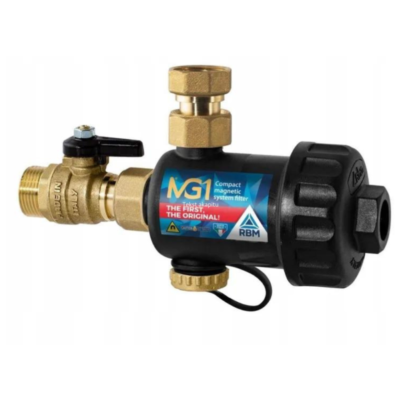 Filtr magnetyczny „MG1” instalacji c.o. do montażu pod kotłem chroni instalacje centralnego ogrzewania przed korozją i wydłuża żywotność kotła – przechwytuje zanieczyszczenia magnetyczne i niemagnetyczne podczas normalnej pracy.