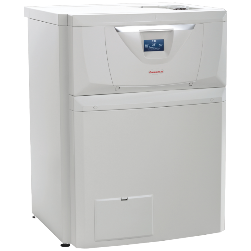 Kocioł kondensacyjny, stojący z wbudowanym zasobnikiem c.w.u. 54 l ze stali nierdzewnej. Szeroki zakres modulacji mocy: od 2,8 do 28,2 kW . Możliwość zarządzania z poziomu panelu kotła 3 strefami grzewczymi z programowaniem tygodniowym (przy zastosowaniu rozdzielacza hydraulicznego DIM oraz opcjonalnych bezprzewodowych sond temp. pokojowej).