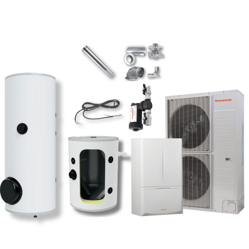 Kompletny system szczególnie dedykowany do budynków nowych jak i modernizowanych. Układ łączący w jednej obudowie pompę ciepła wraz z kondensacyjnym kotłem gazowym. Dzięki takiemu rozwiązaniu urządzenie jest w stanie w całości pokryć zapotrzebowanie budynku na moc grzewczą oraz produkcję c.w.u.